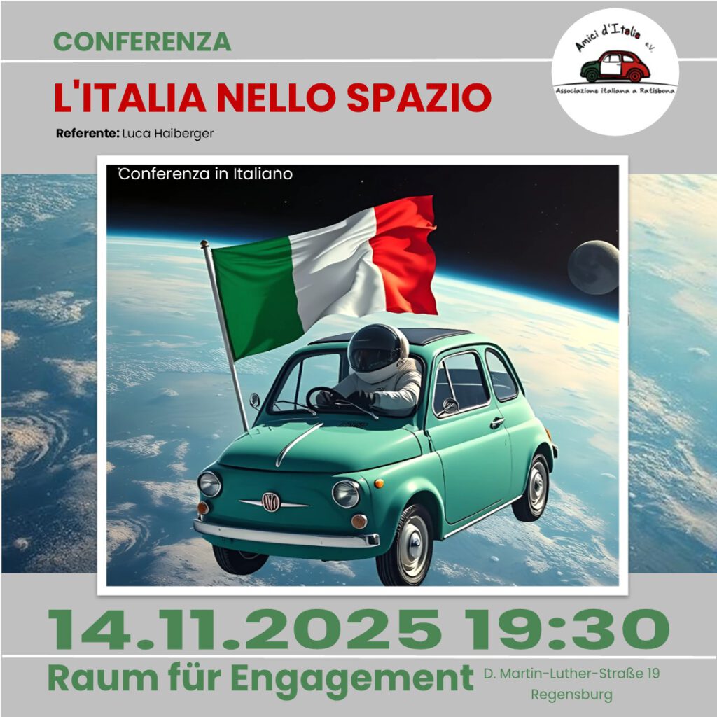 L’Italia ha avuto, e continua ad avere, un ruolo di grande rilevanza nell’esplorazione dello spazio. Merito soprattutto della passione e della dedizione di donne e uomini fuori dal comune, guidati dalla forza di un sogno. In questa serata ripercorreremo insieme la loro storia e visiteremo i luoghi in cui hanno operato. Un’occasione per conoscere un’altra faccia dell’Italia. Italien hat bei der Erforschung des Weltraums eine wichtige Rolle gespielt und tut dies auch weiterhin. Es ist vor allem der Leidenschaft und dem Engagement außergewöhnlicher Frauen und Männer zu verdanken, die sich von der Kraft eines Traums leiten ließen. An diesem Abend werden wir gemeinsam ihre Geschichte zurückverfolgen und die Orte entdecken, an denen sie tätig waren. Eine Gelegenheit, Italien von einer ganz anderen Seite kennen zu lernen.